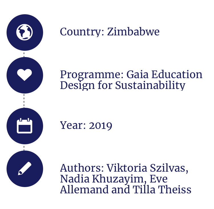 Programme Description Economic, social and environmental issues are interlinked and so require a common worldview to tackle them in an integrated way in order to address the questions of climate change and sustainability so that the needs of individuals, communities and the planet are met without compromising the conditions of survival for present and future life. While there is a pressing call to reduce worldwide consumerism, energy consumption, carbon emissions, and wastage of water and other natural resources, there are also a number of issues associated with rural disadvantaged communities in Zimbabwe with regards to the financial burden and the lack of access to appropriate education on sustainable practices. The mechanistic, reductionist and linear economic system destroyed the ecosystem and social integrity. Moving away from this dysfunctional pattern incentivises the emergence of an alternative mode of thinking and behaving, respectful of the intrinsic environmental and human rights. This way, nature and people can coexist to mutually profit from a thriving livelihood and long term viability.