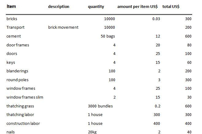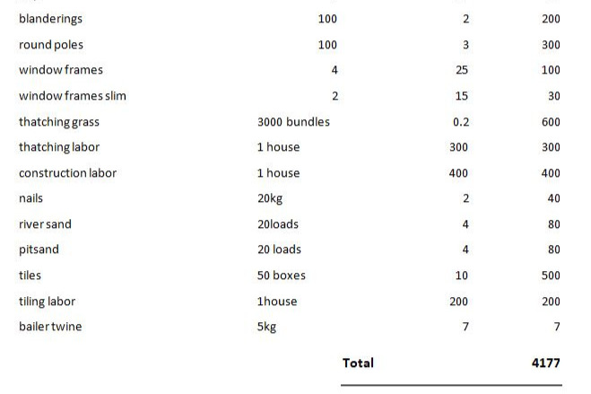 We are aiming to construct 5 huts in the first phase for an estimated $4,200/hut.