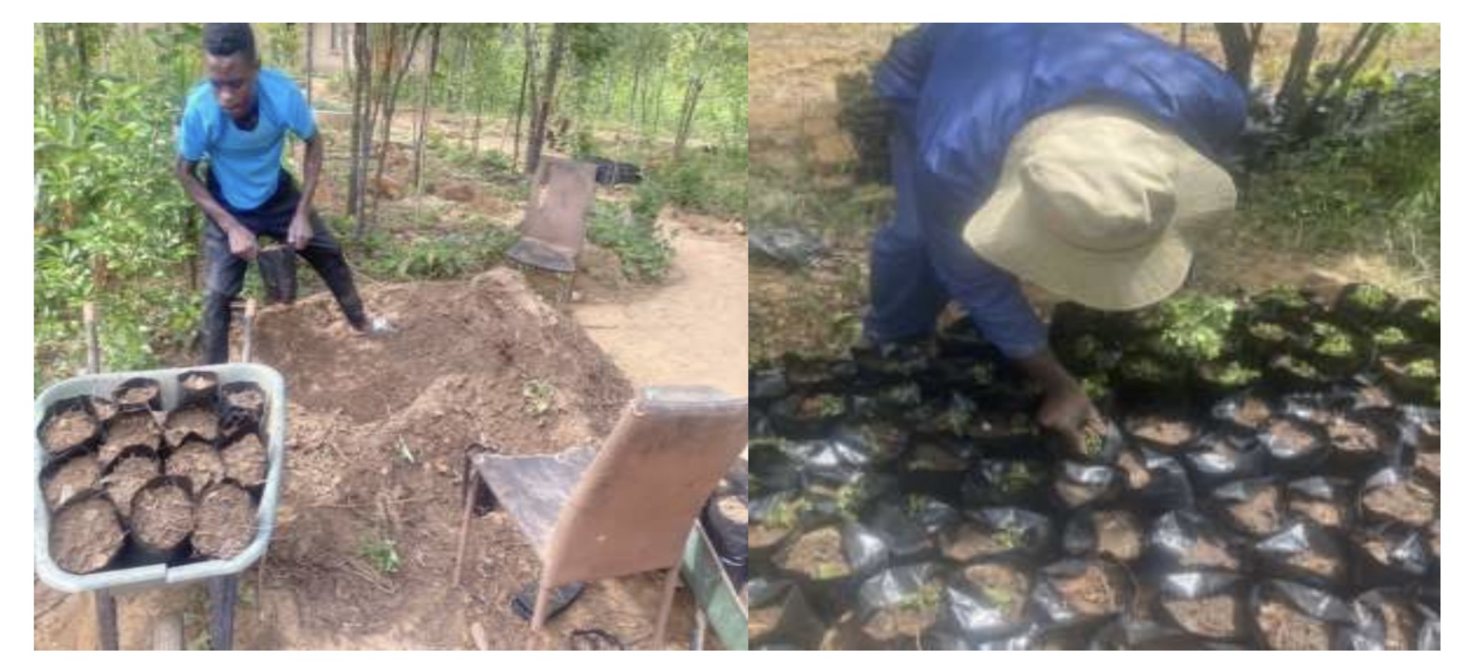We have started transplanting lemons, glaricidia and moringa into plant pots: